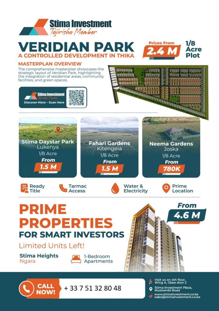 Are you looking for a strategic, secure, and future-ready investment in Kenya’s real estate sector? VERIDIAN PARK by Stima Investment offers a compelling opportunity for smart investors seeking value, growth, and community.